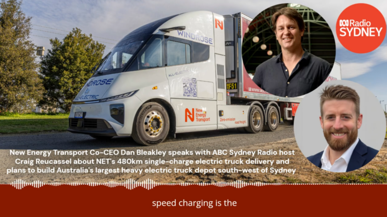 ABC Radio Sydney – NET Co-CEO Dan Bleakley speaks to Craig Reucassel about Australia’s longest single-charge electric truck delivery Read MoreNov 3, 2025